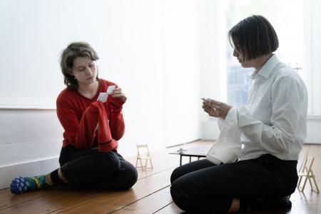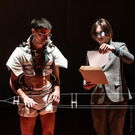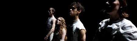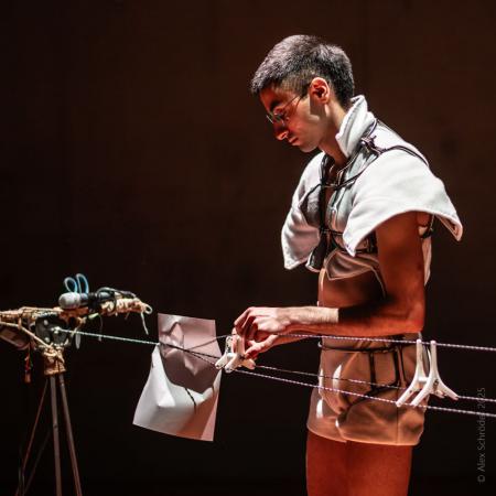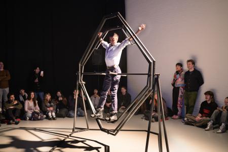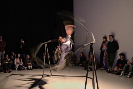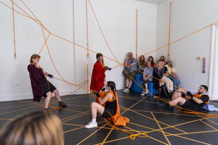 Performance that tells a story about the search for collectivity, the joys and frictions of shaping a ‘collective body’, visualizing the intangible relations.
