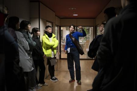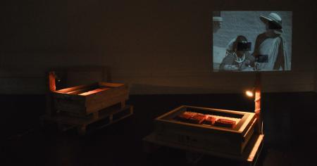 Lecture performance about the colonial history of oil extraction in Indonesia.