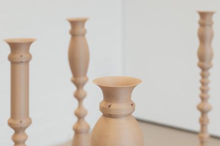 Acoustics Based on Tubes is a project inspired by wind instruments, air ducts, and the correlations between wind and sound. In initial experiments, it became apparent that while most tubes and wind instruments have an initial sound source, the tube itself usually serves especially as a resonating body. Thus, it is sometimes a reed, or even the throat of the musician, which usually triggers the sound. However, the "Acoustics Based on..." series is primarily concerned with how the shape of certain objects produces a certain sound. The question arose of how the tubes can be made to sing by themselves - without there being an original sound source that is amplified by the tube. Based on this research, Murgia designed various modular tubes in varying shapes that are intended to produce sound through processes such as vortex shedding and the Coandă effect. These 3D-printed tubes can be assembled in different variations to form modular tube towers, and are then played by sucking wind through them.