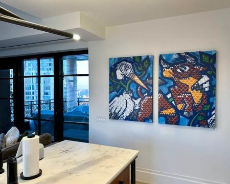 2022Bull and Stork Prive verzamelaar New York City, Verenigde Staten Twee schilderijen in opdracht voor particuliere opdrachtgever